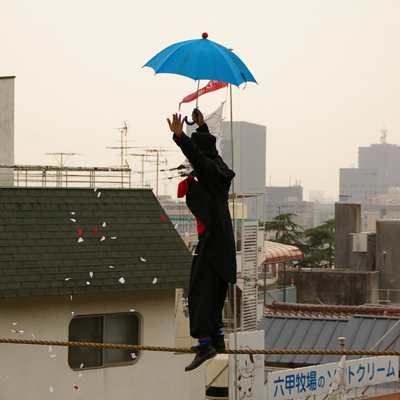 大道芸人さんが 綱渡りしてました。。