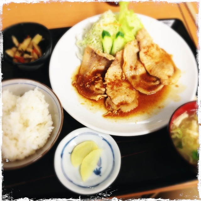 帰りに輪厚PAで夕食。生姜焼き定食。