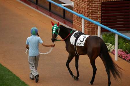 パドックで、「アリエナイ」という名前の馬にカメラを向けたら・・振り向きました。