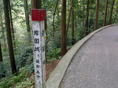 橋の向こうの山頂に、岩国城。