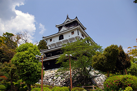 岩国城がありました。 青空と新緑が、白い姿を引き立てます。
