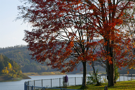 近場に紅葉でも撮りに行こうと、桂沢湖へ。