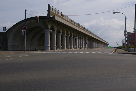 手前は、稚内港北防波堤ドーム。