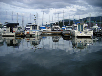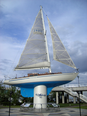 雲は多いですが、太陽がヨットを照らしています。