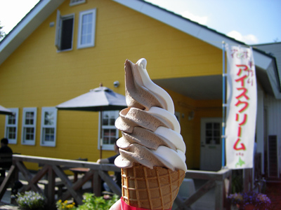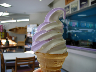 富良野あたりでは、富良野らしく(?) ラベンダーソフトを。