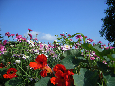 店の周りは、花々が演出。